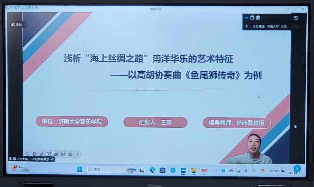 我院其他23名硕士研究生也通过同步的线上会议进行汇报,从福建南音、昆曲艺术、琵琶音乐、中日文化交流、南洋音乐文化、跨文化交流等多个视角,探讨海上丝绸之路音乐文化的历史、发展、推广与传承,充分展示出我院研究生的学术热情,以及良好的学术素养、科研能力与创新意识。
