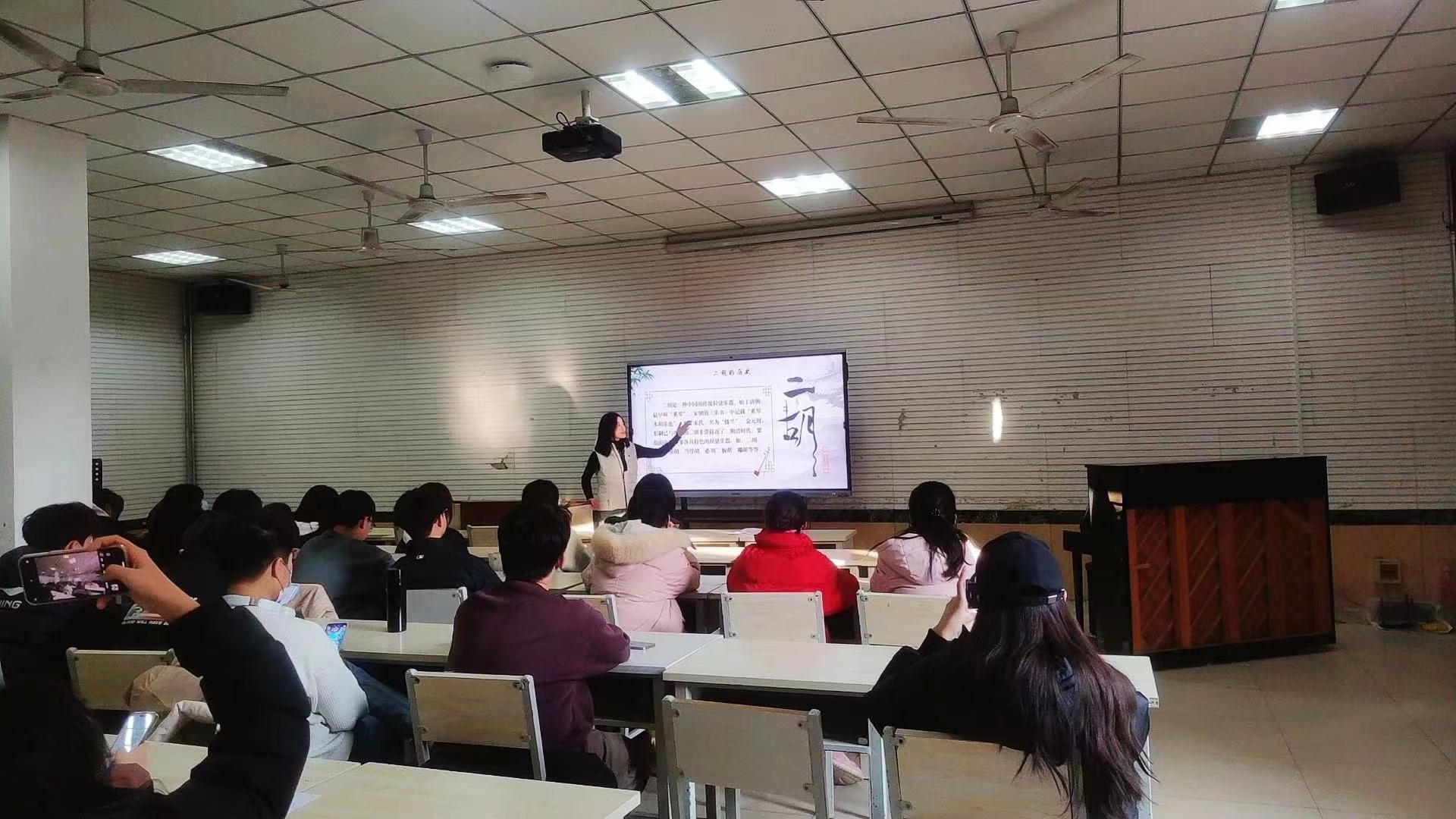 在讲座的结尾,闫家玉强调,二胡作为中国传统乐器的重要代表,其艺术价值和文化意义已远超传统领域,逐渐在现代音乐领域中找到了新的定位和机会。她认为,二胡已经成为了中西文化交流和音乐创作的重要桥梁。为此,她鼓励学生应立足民族文化之本,同时积极吸收和借鉴西方的音乐艺术文化,实现中外交融、兼收并蓄。只有这样,才能创作出既具有民族特色又符合现代审美需求的国际化二胡作品。