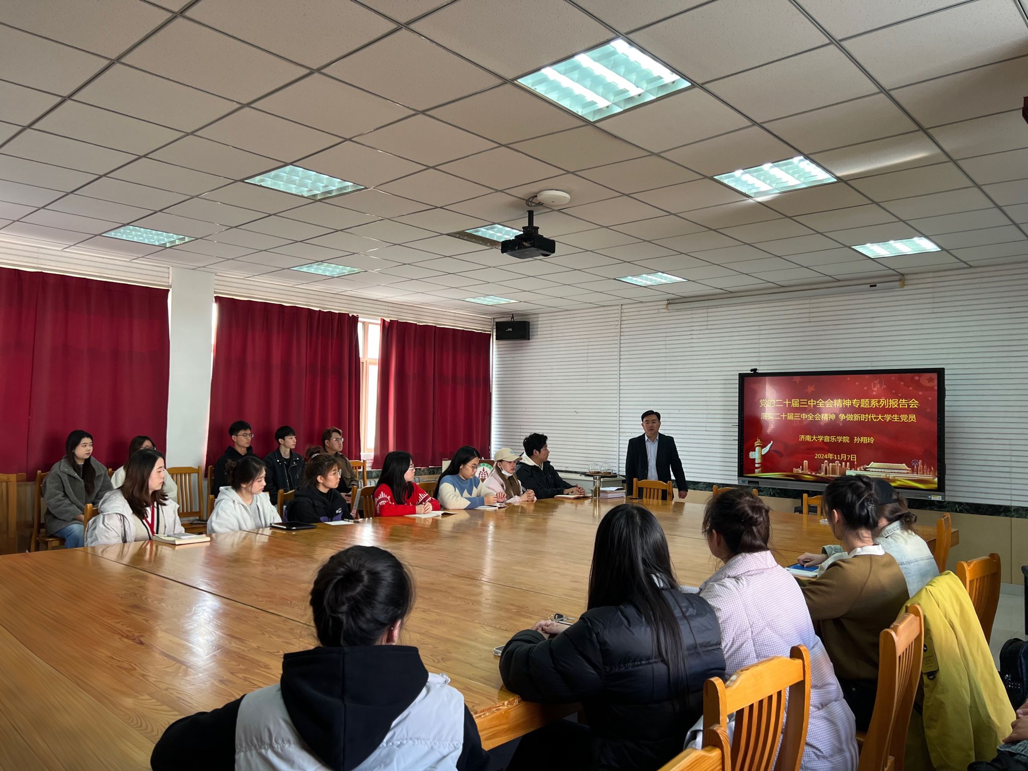 仪式上,孙翔玲代表学院党委作了“落实二十届三中全会精神 争做新时代大学生党员”的报告,传达党的二十届三中全会精神,重点讲解了公报中对新时代新征程高等教育的历史使命和责任担当提出了更高要求的重大意义。同时结合自身成为党员后的成长经历和感悟,向学员们提出三点要求:一是思想要有想法。成为党员发展对象和入党积极分子,是发展党员的开始,学员们要积极端正学习态度,正确认识参加入党积极分子、发展对象培训的重要意义;二是学习有方向。同学们的主业是学习专业知识,要志存高远,俯下身子刻苦学习专业技能,为今后的自身发展夯实专业能力基础;三是努力有目标。首先要圆满完成本次培训的任务,其次要提前规划好自己的人生成长道路,有的放矢的做好准备工作。