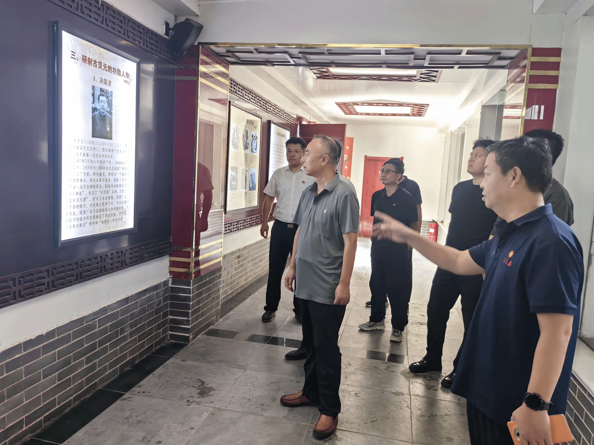 调研组一行首先参观了古贝春集团酱香酒生产车间走廊、1310智能化酿酒车间、酒库楼、地下酒库、厂史馆等处,实地感受了古贝春酒文化。在酱香酒生产车间走廊,客人们通过详细的图文资料初步了解了集团的发展历史,感受到了集团浓厚的企业文化氛围。在实地参观调研酒库楼、地下酒库、灌装车间的过程中,大家详细了解了酿酒原料及生产流程,传统技艺与现代科技的水乳交融。在厂史馆,以张子文、李庆荣、周晓峰等为代表的功勋企业家赫然在列,古贝春之所以能够由小到大、由弱到强,正是一代代人辛勤付出心血与汗水的结果。古贝春酒作为鲁酒的代表之一,早已被列入山东省“非物质文化遗产”保护名录,其传统的酿造技艺不仅历史悠久,而且深深浸润着传统文化。
