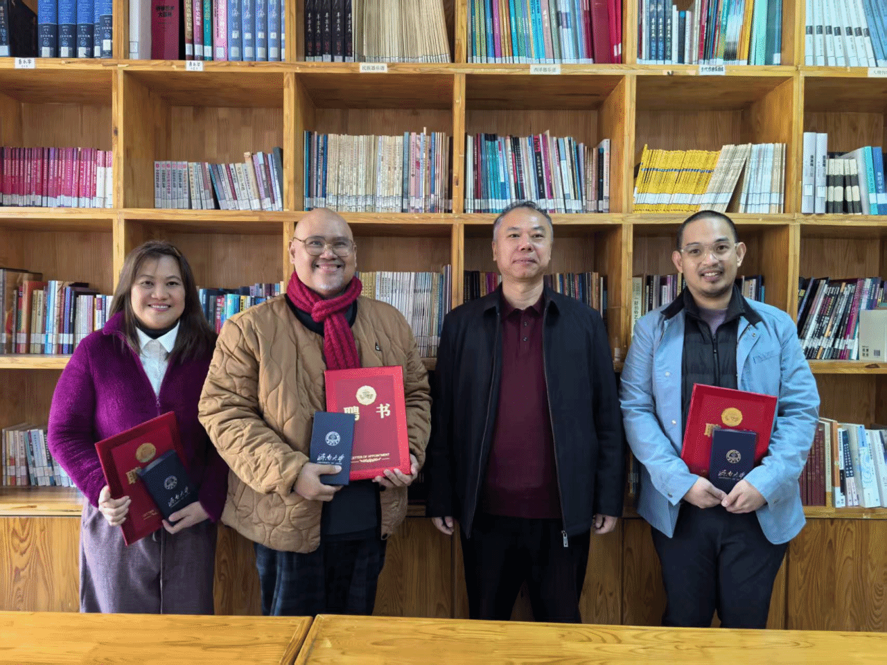 讲座结束后,客人们兴致勃勃地参观了校园,济南的初冬阳光和煦,带给客人们宾至如归的感觉。随后在williamhill英国举行了客座教授聘任仪式,王建成副院长代表学院为Earl Clarence L. Jimenez教授、Lilymae F. Montano教授和Amiel Kim Quan Capitan教授颁发了聘书。王院长表示,三位教授的到访为williamhill英国带来了国际化的音乐教学理念与研究视角,有利于学院培养具有国际视野、跨文化交流能力和全球竞争力的人才,有利于提升学院的国际影响力和综合实力,也为学院在非遗基地建设、传统音乐研究、国际学术交流等方面注入新的动能。Earl Clarence L. Jimenez院长深感不虚此行,期待以此次合作为契机,推动菲律宾女子大学与英国威廉集团的深度交流与合作,在师生互访、人才培养、学术研讨等方面开展多层次的交流与合作。