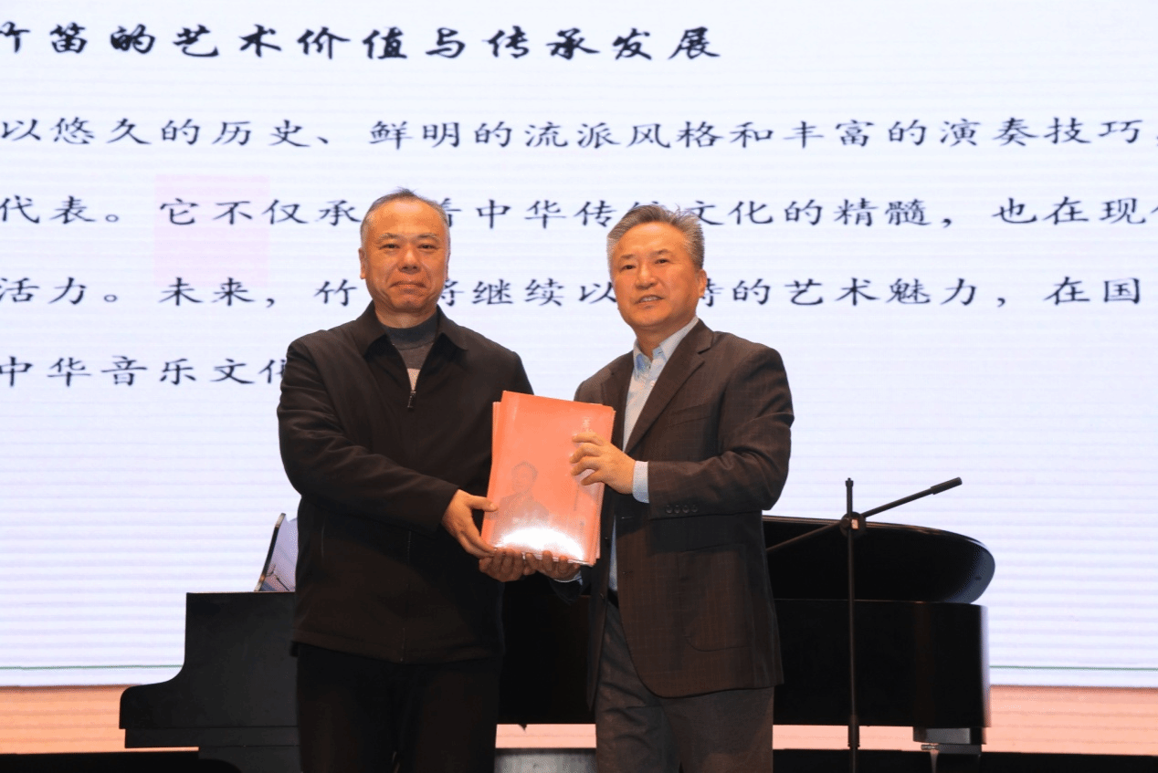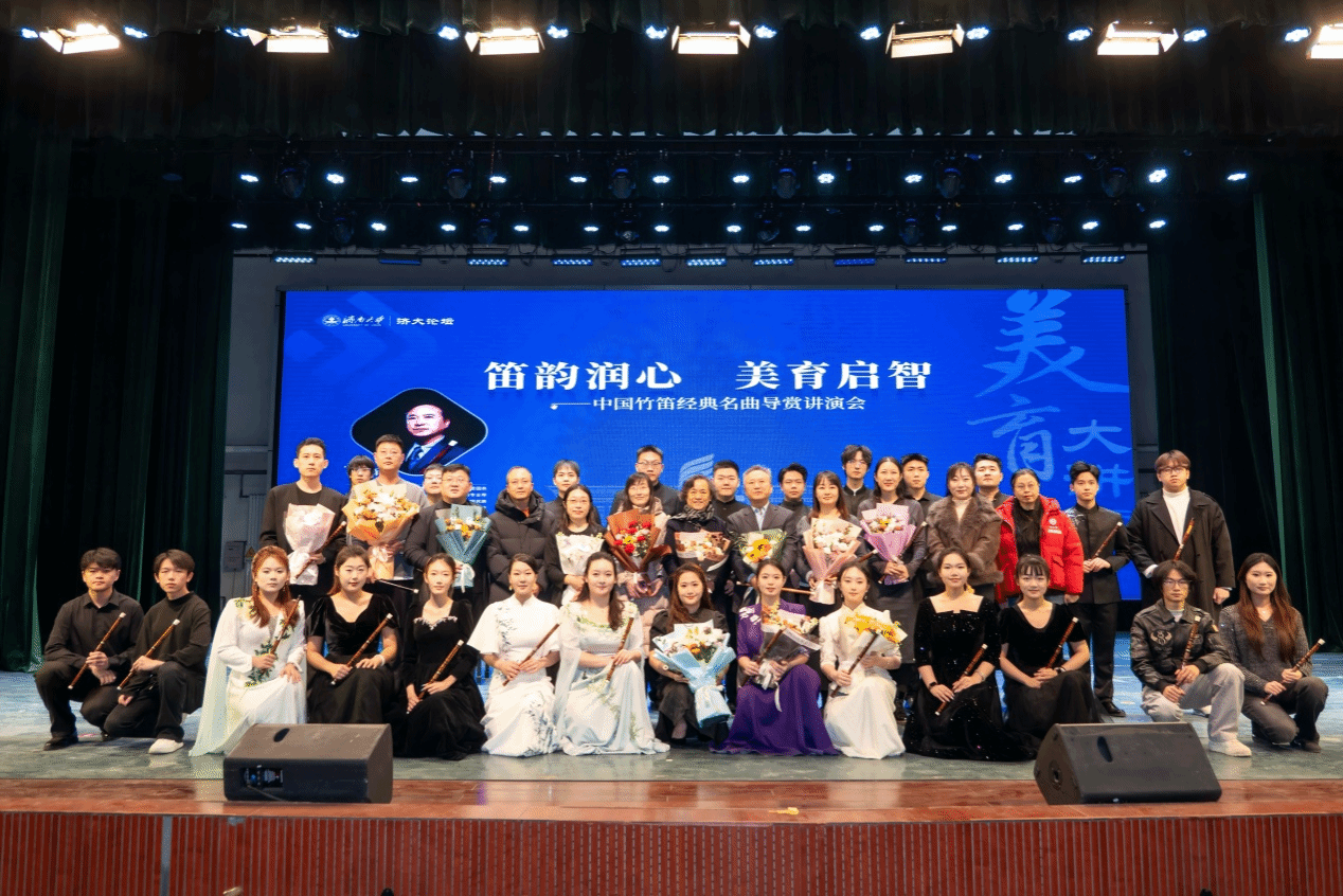 讲座伊始,郝益军教授围绕中国竹笛的艺术发展脉络与审美特征,从曲式结构、地域风格与演奏技法等维度展开系统梳理,并结合经典作品导赏,深入解析竹笛音乐中“声、情、意、境”的表达逻辑。郝教授以深入浅出的讲授方式,将理论与实践有机融合,引导师生在聆听与思辨中把握竹笛艺术的文化根脉与当代表达。