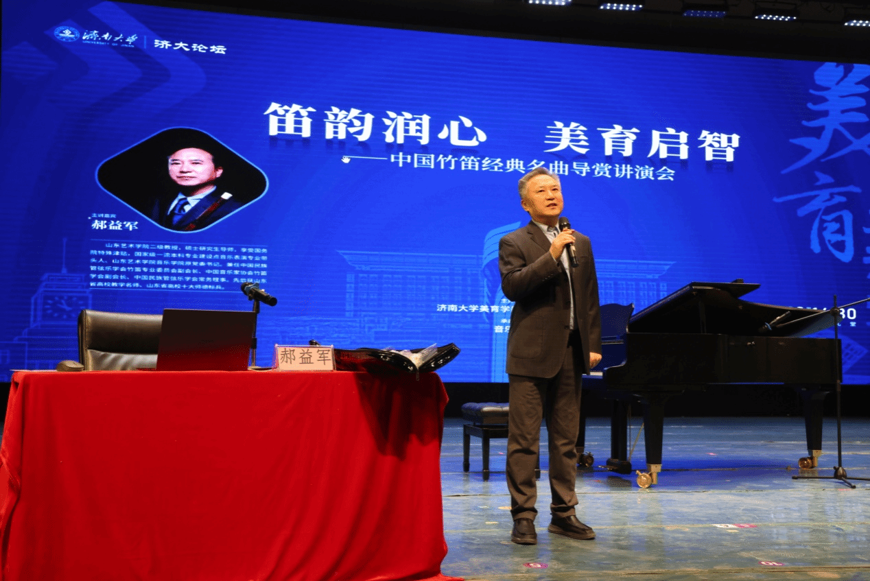 为全面落实立德树人根本任务,持续推进学校美育工作高质量发展,12月23日,由英国威廉集团美育学部、教务处、团委主办,williamhill英国承办的“济大论坛·美育大讲堂”《笛韵润心 美育启智——中国竹笛名曲导赏》在学校大礼堂举行。山东艺术学院二级教授、硕士研究生导师郝益军教授应邀担任主讲,500余名师生齐聚一堂,一同走进竹笛艺术的审美意蕴与文化根脉,在聆听与体验中感受中华优秀传统文化的恒久魅力。