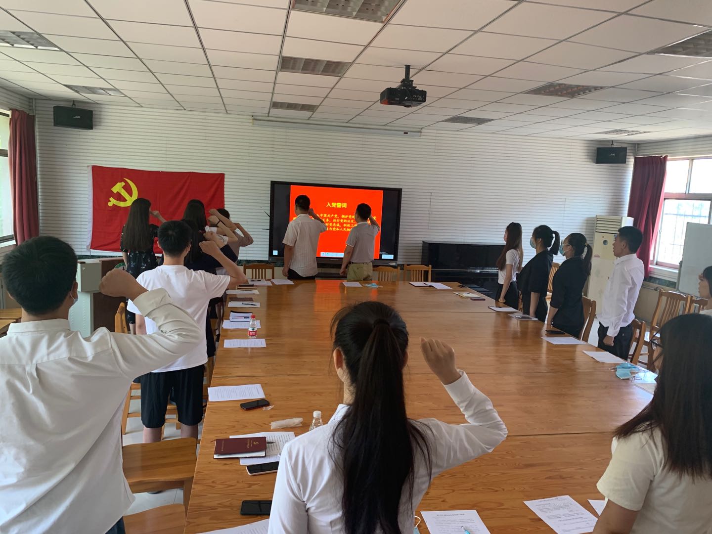 活动最后,学院领导老师同全体毕业生党员一起面对党旗重温了入党誓词,学办主任马媛老师就毕业党员组织关系转接等工作做了具体安排。