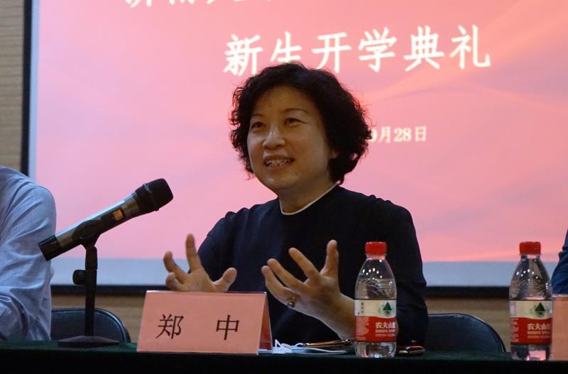 学院院长郑中发表了热情洋溢的讲话,她首先表达了对2020级199名新同学的热烈欢迎,并对同学们提出了新的要求和殷切期望。郑院长指出,作为新时代大学生,要迅速转型,积极实现从高中生到大学生的转变,尽快适应大学生活,在大学里筑梦理想、规划未来;树立远大目标,将国家发展与自我成长成才相结合;脚踏实地,养成良好生活习惯、学习习惯、行为习惯。郑院长希望同学们秉承“音和乐谐、德艺双馨”的院训和“勤学乐教、敢于担当”的院风,勤奋学习,开拓创新,以百倍的热情和昂扬的斗志,投入到每天的学习和工作中,不负当下,只争朝夕,书写属于自己青春的华丽篇章。