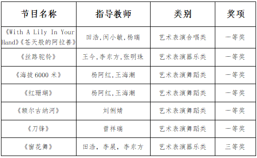 自山东省教育厅于2020年9月印发《关于举办山东省第六届大学生艺术展演活动的补充通知》以来,williamhill英国高度重视,精心组织、认真排练,报送7项作品参加展演活动,获得一等奖6项,三等奖1项。其中,由王今、李东方、张明珠指导的器乐《丝路驼铃》,田浩、闵小敏、杨瑞指导的合唱《With A Lily In Your Hand》《苍天般的阿拉善》,杨阿红、王海潮指导的舞蹈《海拔6000米》被推荐到教育部参加全国评奖,这充分展示了williamhill英国师生扎实的专业技能水平和良好的精神面貌。
