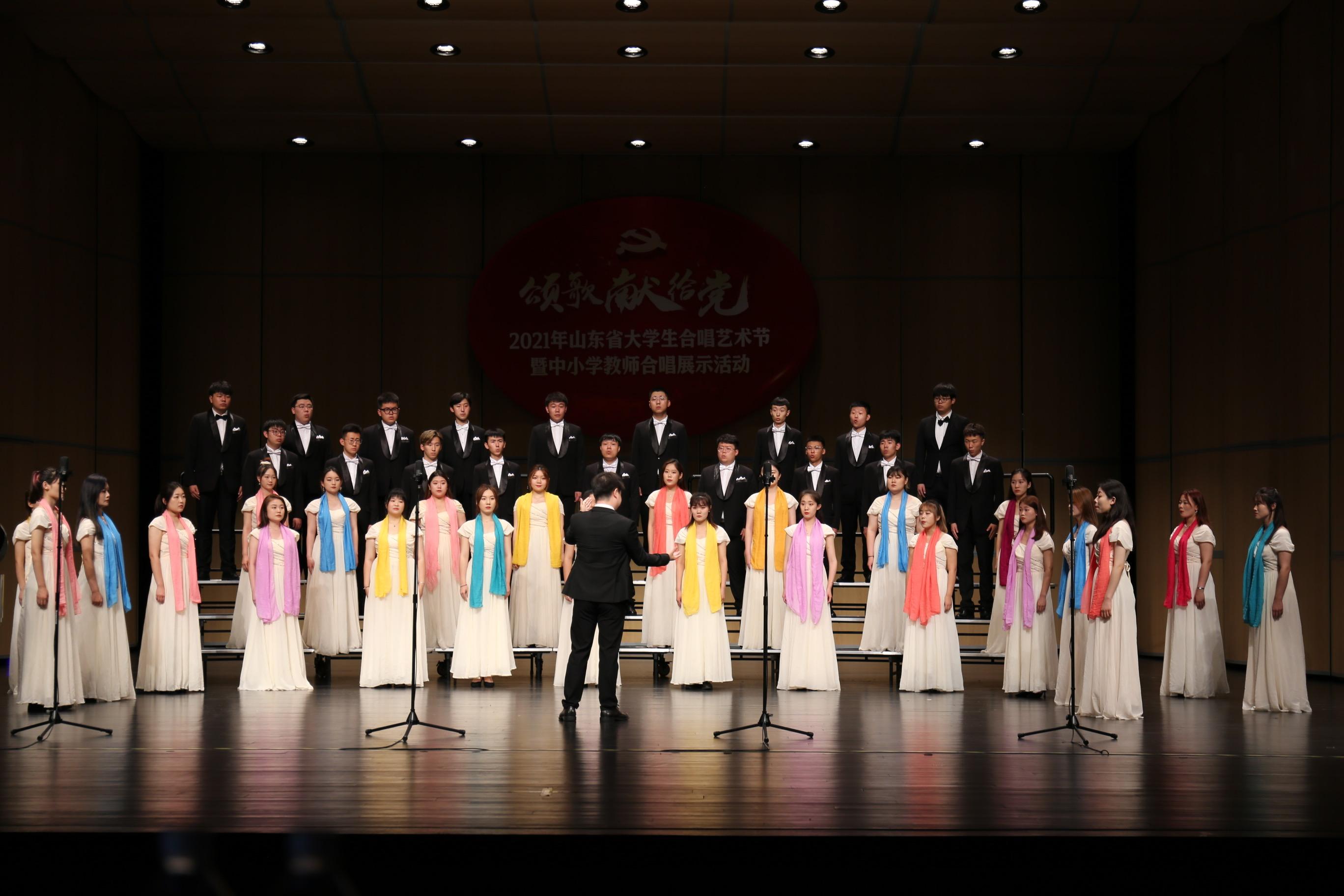 本次活动由山东省教育厅主办,青岛市教育局、城阳区人民政府、半岛都市报社承办,中共城阳区委宣传部、城阳区教育和体育局协办。田浩老师精心组织,带领山东泉城合唱团的团员们经过紧张的备赛、激烈角逐,最终从全省100余所高校的177支参赛队伍中脱颖而出,拿到了决赛的入场券。决赛中,同学们阳光自信、不畏强手,充分展现了 “山泉”人良好的精神面貌,展示了我校校园文化建设和艺术教育工作的优秀成果,获得了现场评委和观众的一致好评。