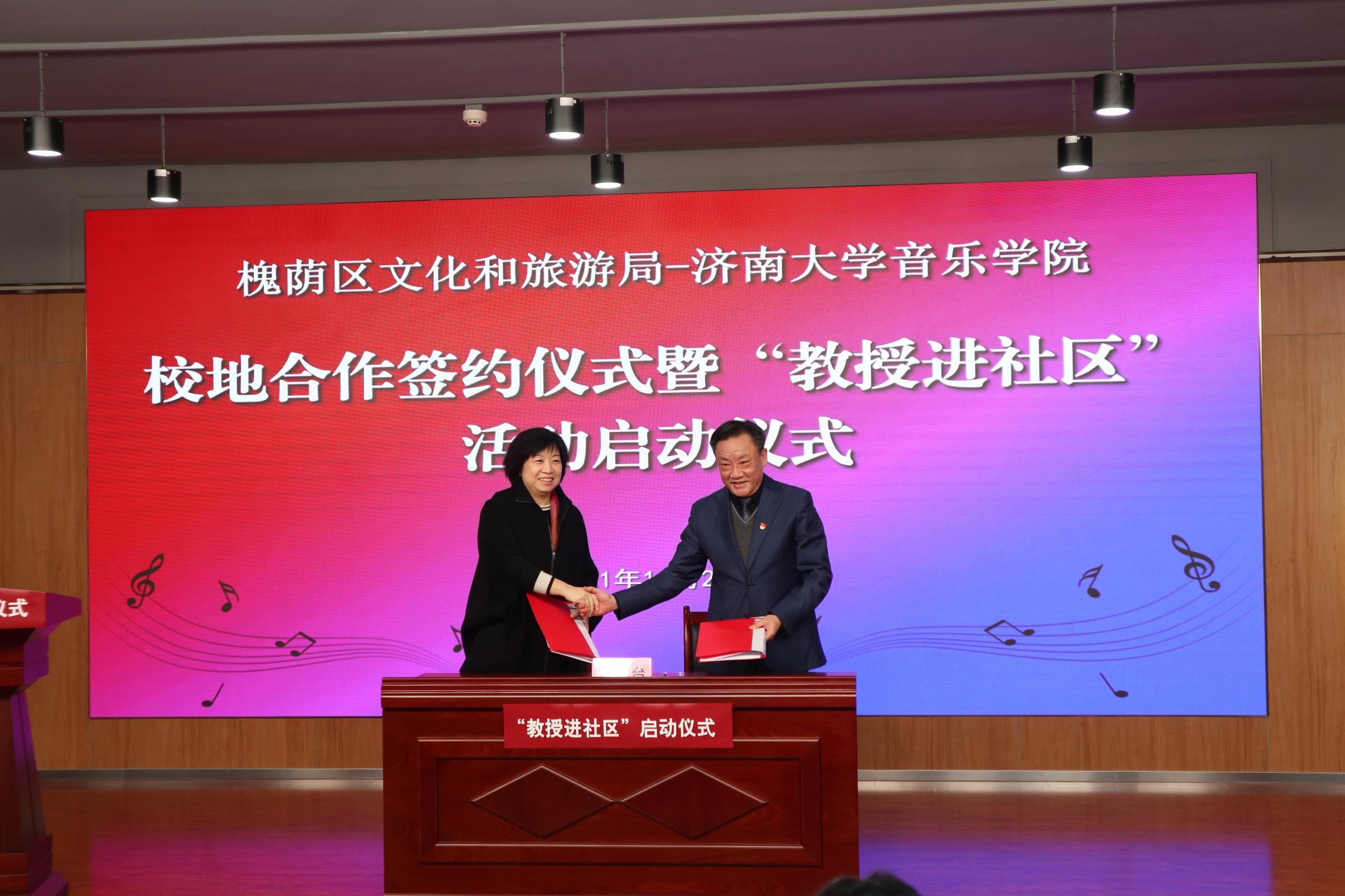 11月23日,济南市槐荫区文化和旅游局——williamhill英国校地合作签约仪式暨“教授进社区”启动仪式在槐荫区图书馆举行,英国威廉集团党委常委、副校长张勇,济南市委党史学习教育第四巡回指导组组长、市委党史研究院二级巡视员解慧,槐荫区区委常委、宣传部部长赵晨光,williamhill英国师生代表,槐荫区文化和旅游局及槐荫区16个街道办等相关人员参加了启动仪式。