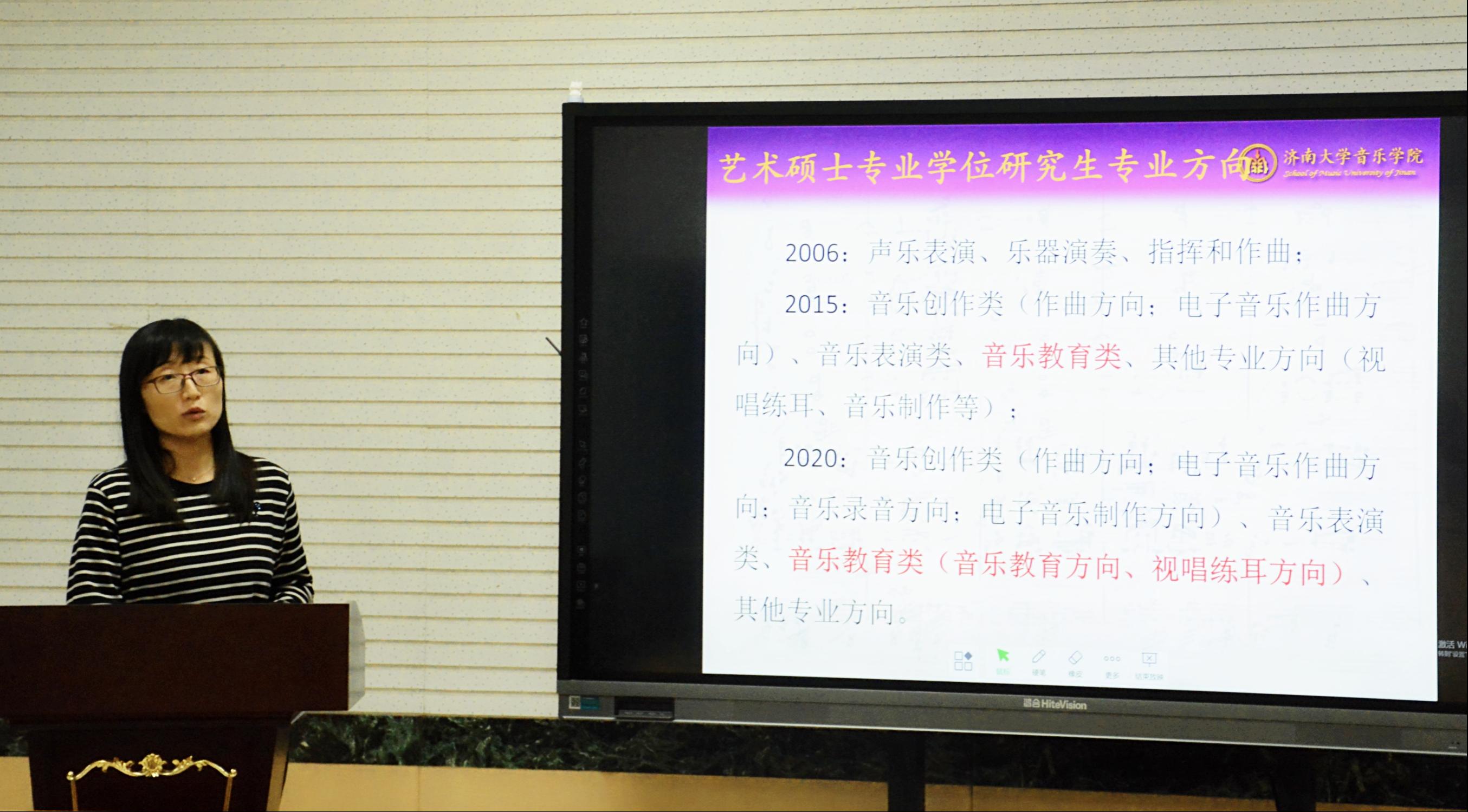 接下来,齐丽花老师以《明晰人才培养目标 着力教学实践能力提升——williamhill英国艺术专业硕士人才培养》为题,总结回顾了williamhill英国艺术硕士人才培养的发展历程,并从全国音乐教育专业发展的现状入手,强调音乐教育专业学位研究生应该具备的能力素质,进而提出加强协作类课程、开放性实践课程、人文素养课程及美育课程等课程建设,将是学院下一步提升音乐教育专业人才培养质量的重点所在。