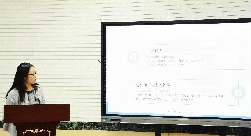 《自弹自唱》《键盘和声与即兴伴奏》两门课程培养的学生弹唱能力、即兴伴奏能力是音乐教育专业学生的必备专业素质与教学实践能力。闵小敏老师运用“比较”的方式对两门课程的异同进行了阐述,指出这两门课程在教学过程中相互影响,结合教学实际,闵老师运用教学案例,对学生的学习现状进行了细致分析。