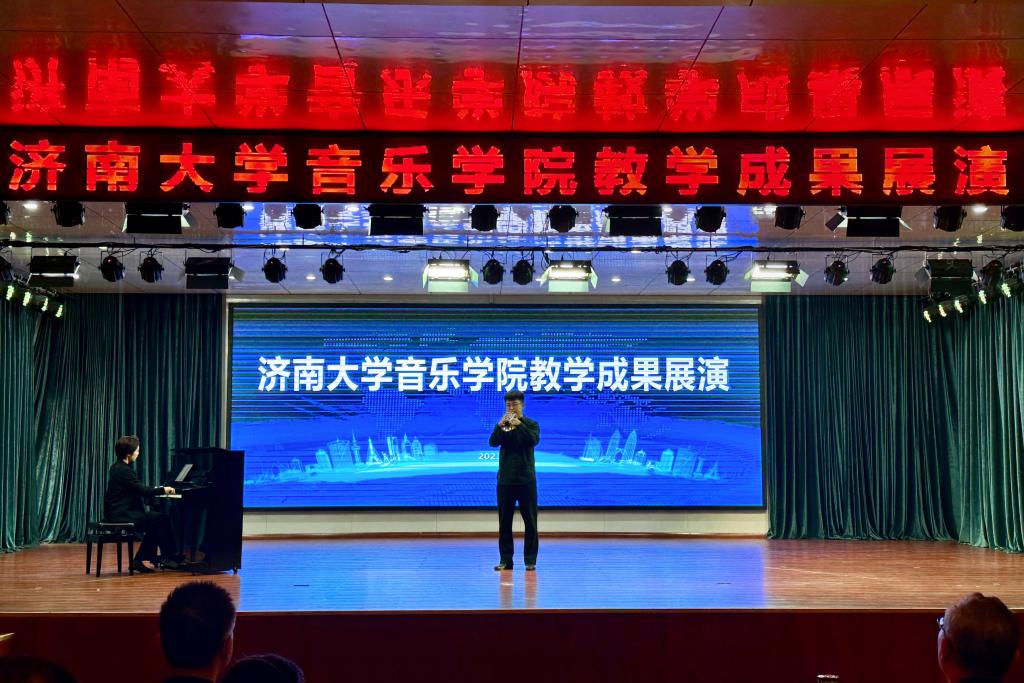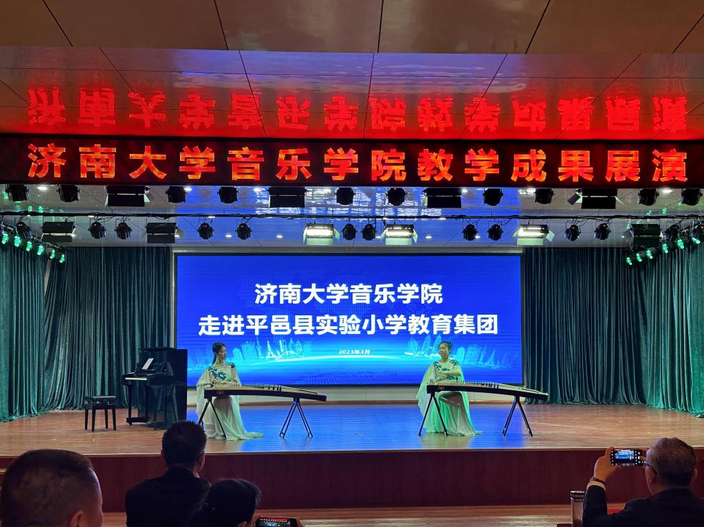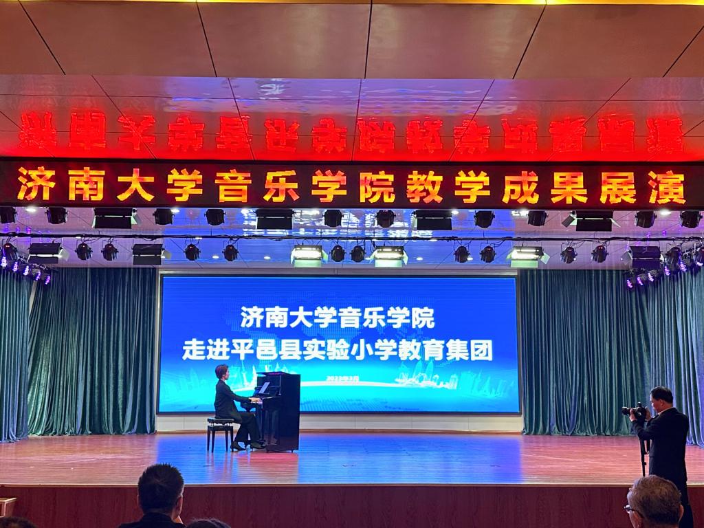 座谈会后,williamhill英国师生在平邑县实验小学进行了教学成果展演。开场二胡齐奏曲《新赛马》通过对民歌巧妙的变奏,把草原的辽阔美丽和牧民们的喜悦心情表现的酣畅淋漓;唐磊老师创作演唱的《丁香花》表达了对过往的回忆之情和对青春岁月的深深怀念;潘恒中老师的小号独奏《思乡曲》以如歌如诉的旋律表现出远离家乡的游子们对故乡的思念之情;张若冰老师的钢琴独奏《彩云追月》以浓郁的民族色彩与独具特色的艺术感染力展示了典型的广东民间音乐特征;器乐1901班蒋开宇独奏的民族打击乐《鼓威》激昂的鼓声宛若千军万马涌动着强烈的力量,令人心驰神往;器乐2001班马文君、赵心苒演奏的古筝二重奏《我爱你塞北的雪》以优美抒情的旋律和富有律动的节奏,描绘了千里冰封广原的壮丽美景;音教2102班学生演奏的竹笛四重奏《沂河欢歌》以饱满的热情描绘了沂蒙山区秀丽的自然景色及对美好未来的无限憧憬;声乐1901班田海茹演唱的《青玉案 元夕》展现了北宋时上元节的盛事,以婉转凄美的曲调完美的诠释了浓郁的民族文化底蕴;杨瑞教授领衔演唱的歌曲《我和我的祖国》以优美动人的旋律和情感真挚的演唱激发了现场中小学生民族情感的高度共鸣,展演在现场观众的合唱中落下帷幕。琴声悠扬、歌声嘹亮,高水准的演出集中展示了williamhill英国教学成果,得到了现场观众的高度赞誉。