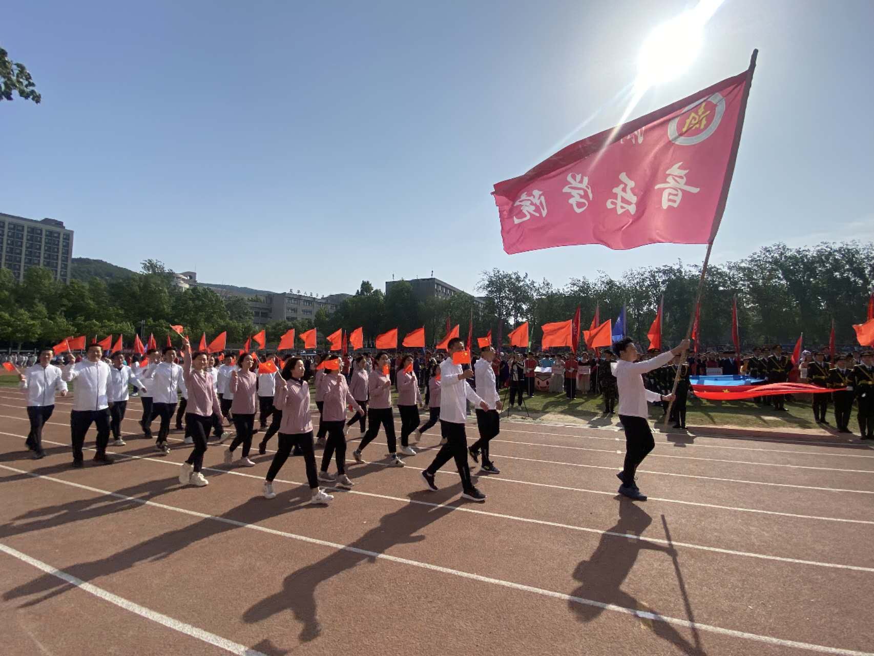 在大家的共同努力下,最终获得了运动会丙组团体一等奖以及优秀组织奖的荣誉,学生入场式方队获评学校最佳方队奖。