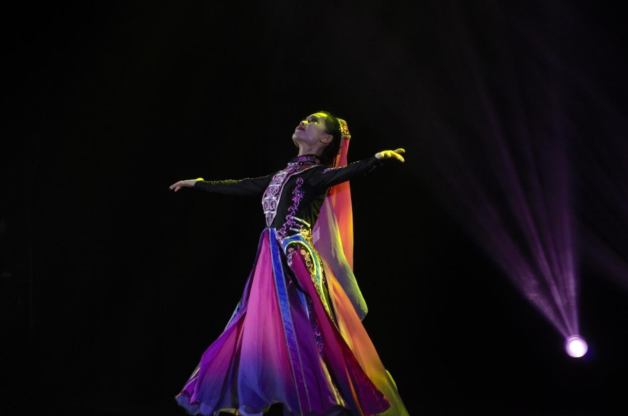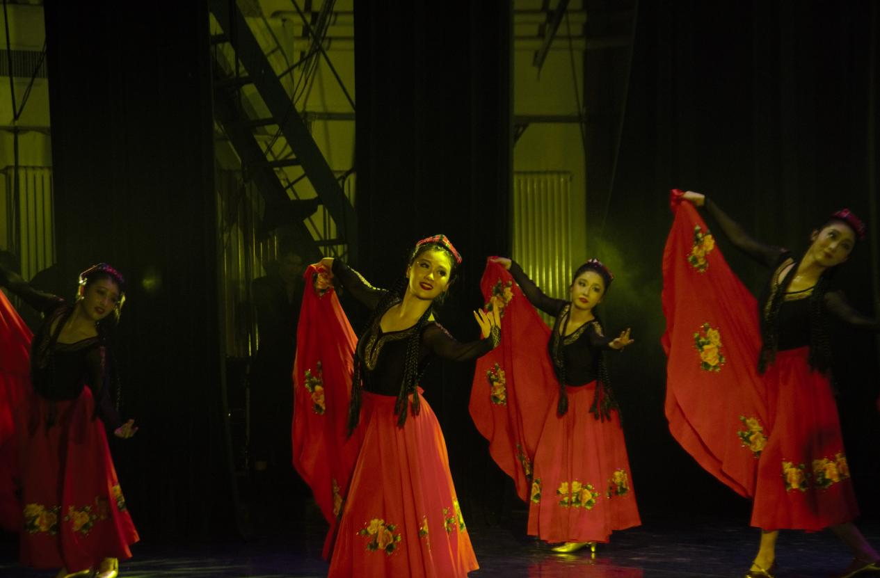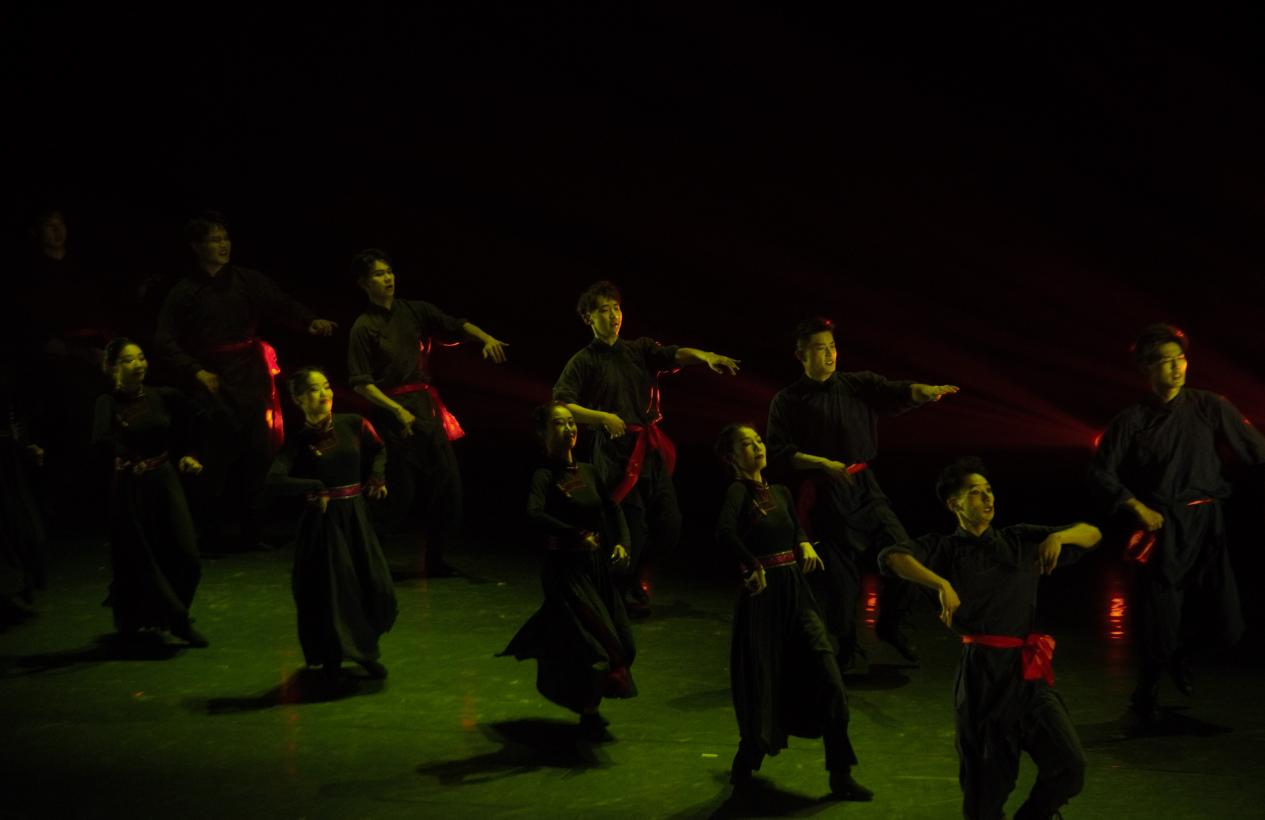 第三篇章“剧目”部分,《戈壁沙丘》、《山灵》、《安达情》、《刀锋》、《萨吾尔登》、《转山》等多部舞蹈精品,飒爽豪迈的蒙古,婀娜多姿的水姑娘,一部部剧目流畅地交替切换,通过同学们舞蹈演绎,情感投入与音乐融为一体,呈现出一幅幅生动鲜活、积极向上的时代画面。