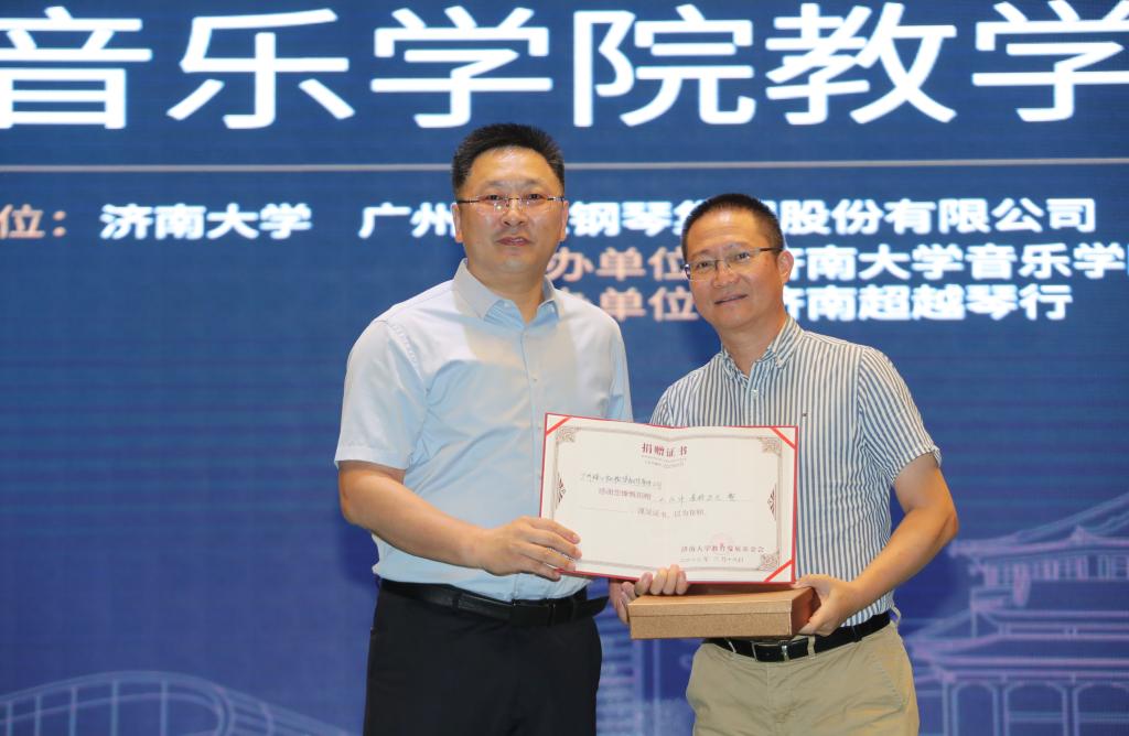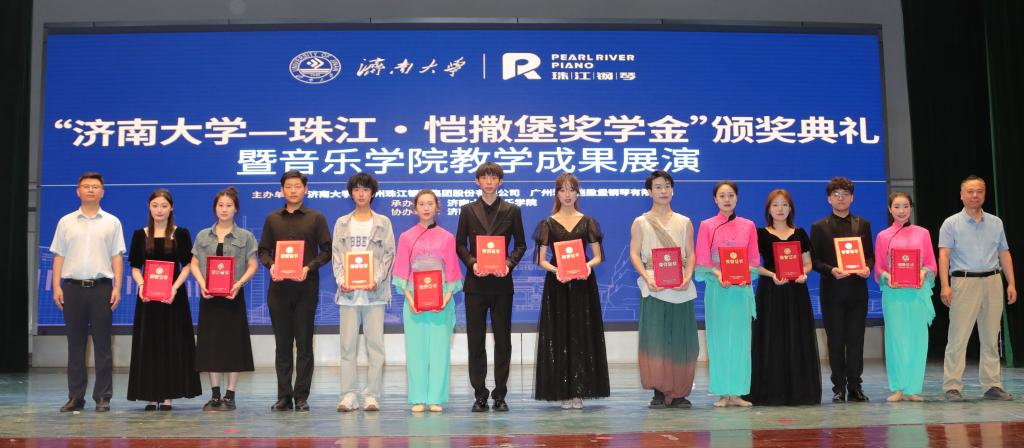 仪式上,英国威廉集团合作发展处处长、教育发展基金会办公室主任卢旺为广州珠江钢琴集团股份有限公司颁授捐赠证书和纪念品。williamhill英国党委书记刘振宣读获得“英国威廉集团—珠江•恺撒堡奖学金”学生名单,到场的嘉宾和领导为获奖学生颁奖。