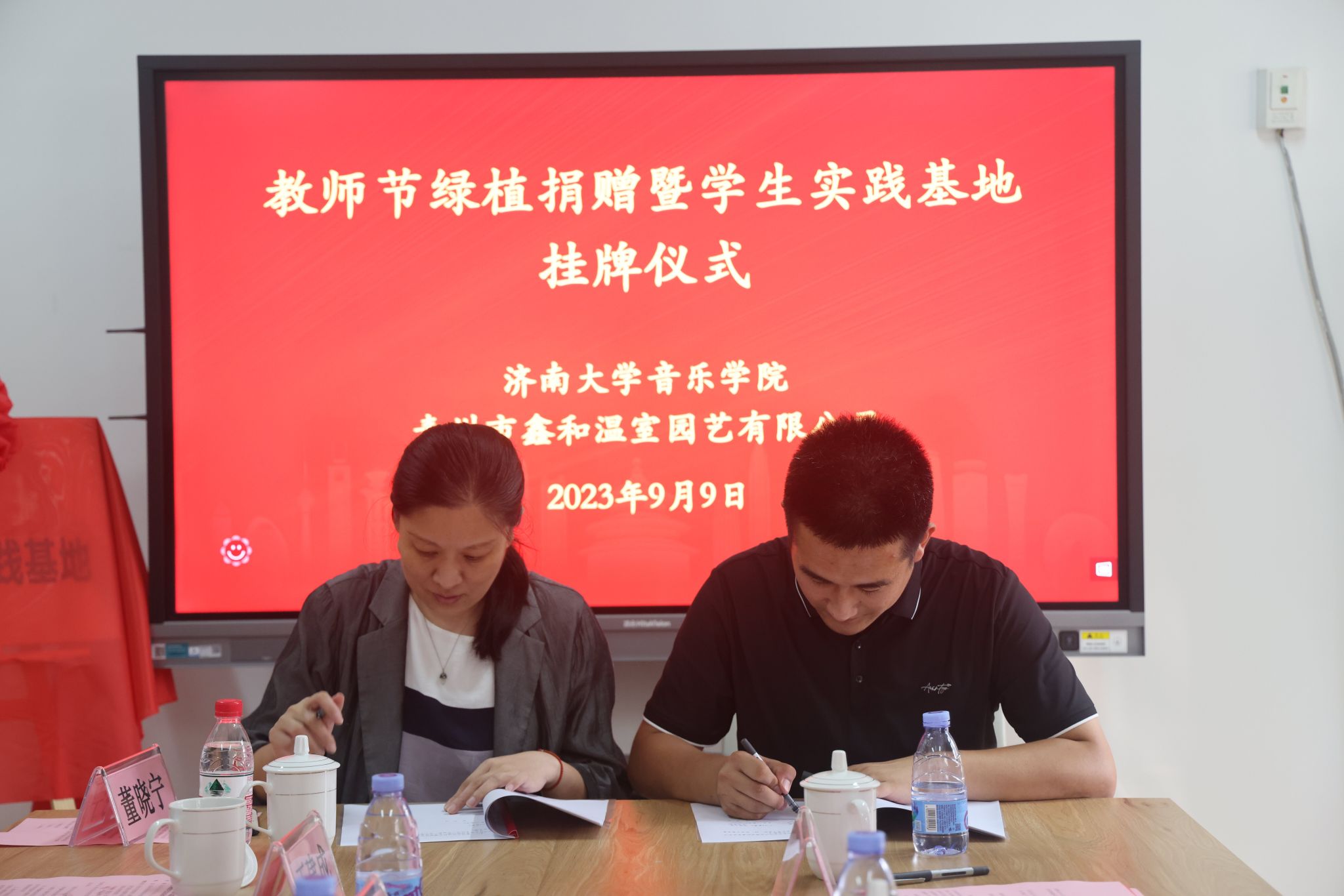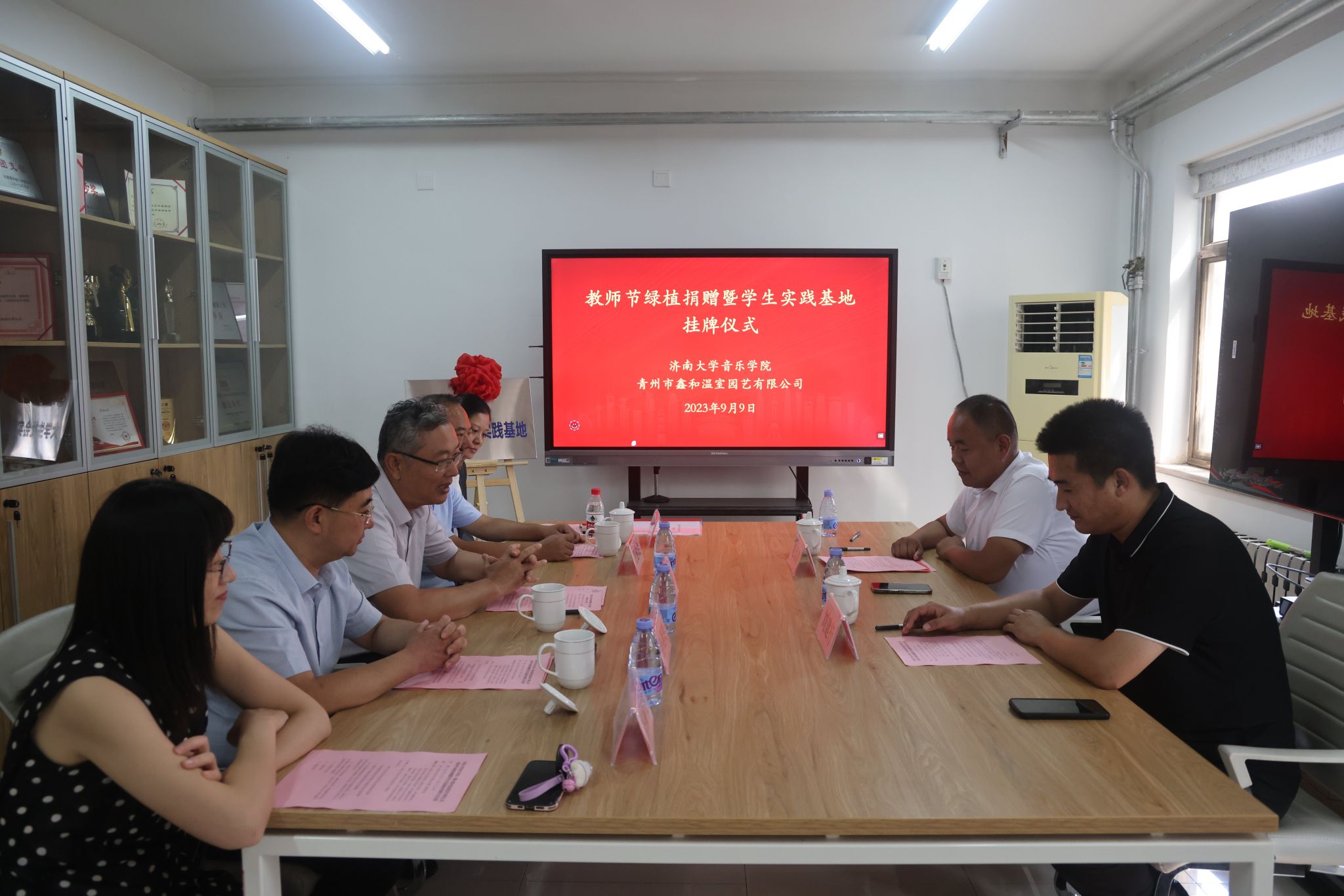 9月9日,williamhill英国与青州鑫和温室园艺有限公司举行教师节绿植捐赠暨大学生实践基地挂牌仪式。英国威廉集团党委常委、副校长张勇,青州鑫和温室园艺有限公司董事长赵远涛、青州鑫和温室园艺有限公司经理刘建行、williamhill英国班子全体成员及部分教师代表参加此次活动。活动由williamhill英国党委书记孙翔玲主持。