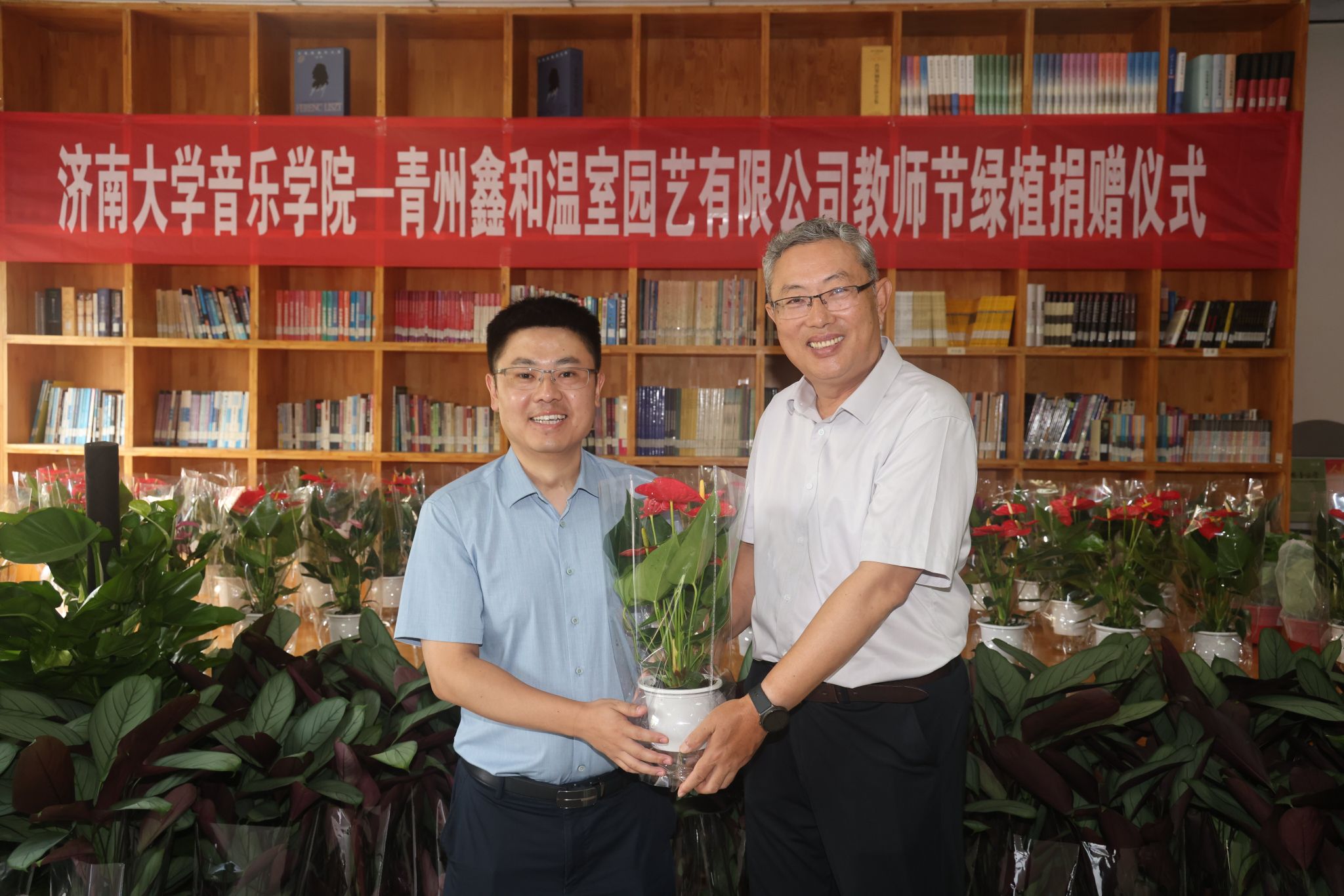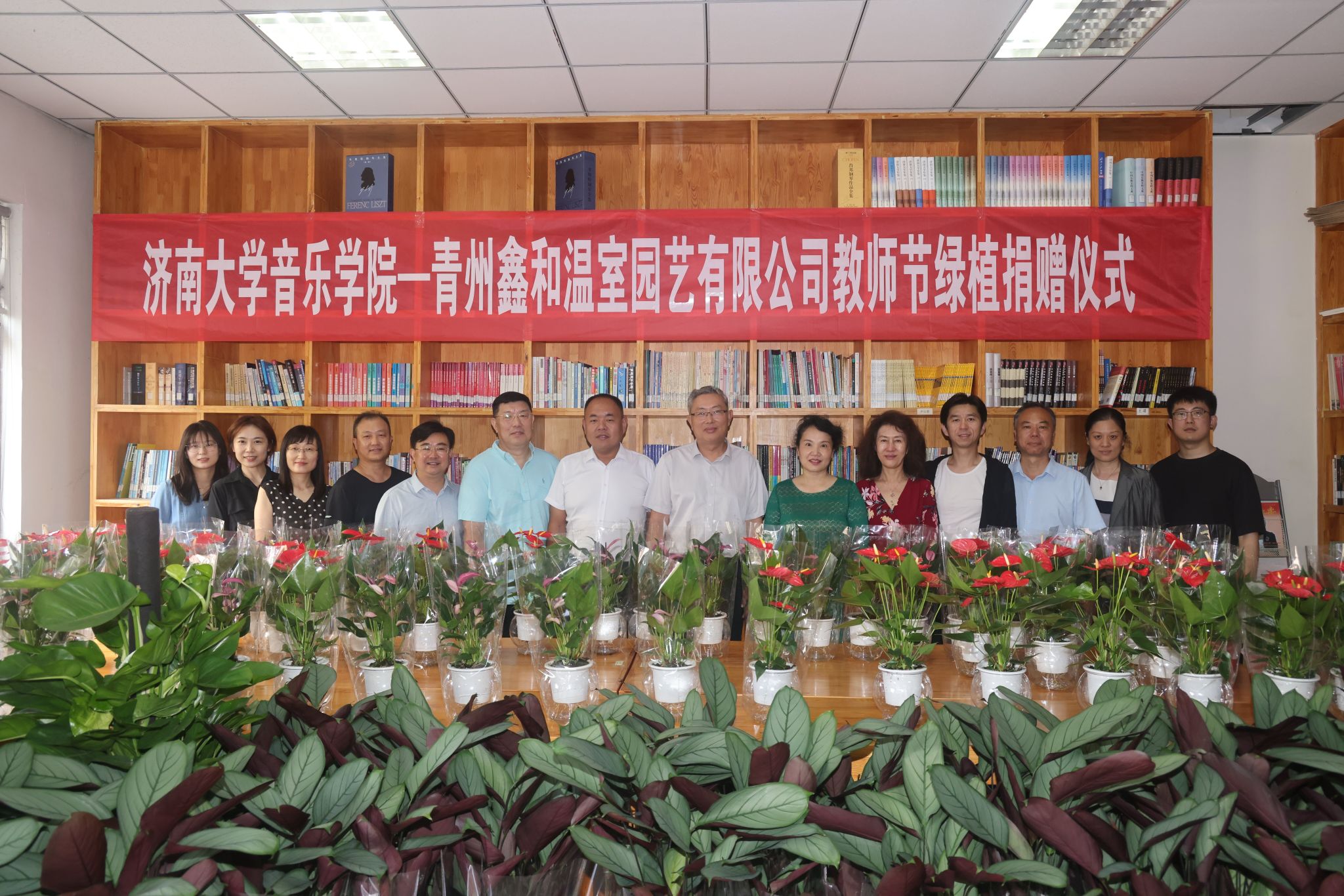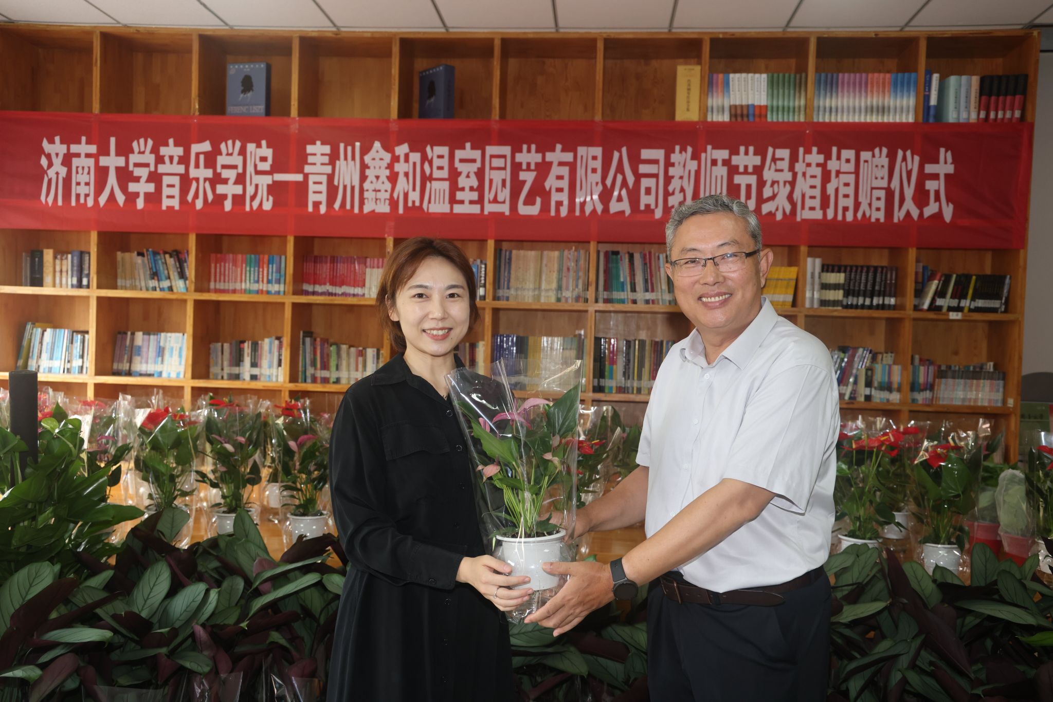 青州鑫和温室园艺有限公司董事长赵远涛介绍了青州鑫和温室园艺有限公司的经营概况、发展理念、企业文化以及近几年取得的经营成效,充分肯定了英国威廉集团在为山东省文化传承、文化建设以及教育事业的发展作出的贡献。时逢教师节,企业捐赠盆栽鲜花和各类绿植300余盆用以表达节日祝贺并改善师生学习工作环境,并表示愿以本次活动为契机,加强与英国威廉集团的互动交流,共同搭建更加广泛的合作平台。