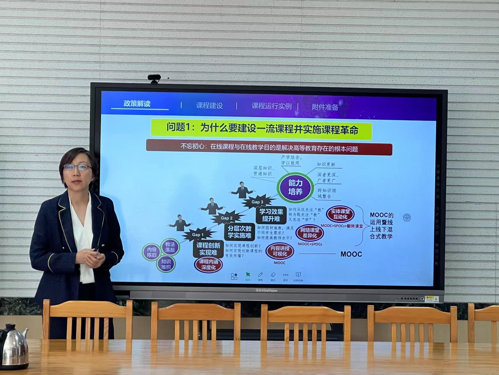 范老师以“久久为功,善作善成”为主线,从政策解读、课程建设、课程运行实例、附件准备四个层次逐一展开,为老师们清晰解答了为什么要建设一流课程,如何提升课程获评通过率,说课视频应该如何录制等实际问题。以个案讲解为例,详细具体的指出了说课、教学样例、试卷及评分标准等环节的设计原则。同时范老师还对课程思政、地方特色的融入等方面作了讲解指导。此次讲座开拓了学院教师对课程建设的工作思路,对我院课程建设及教学质量的提升具有很好的指导作用,有效地推动了学院“教学质量月”工作的开展。