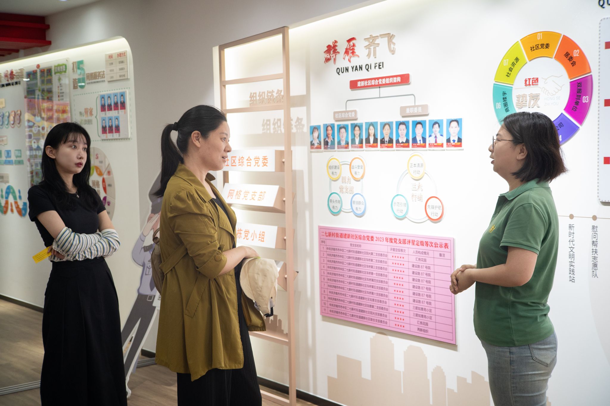 调研组一行参观了建新社区党群服务中心和各功能区域建设打造情况。随后,董晓宁与社区负责人进行了深入交流,双方计划通过志愿者进驻社区、开设公益课堂和讲座、社区游学活动进校园、设立实践基地和实习岗位等多样化形式,加强我院与建新社区紧密联系,构建长效合作机制。二七新村街道将持续优化校地合作平台,致力于共同打造“长效化、专业化”的社会实践服务工作模式,以确保志愿服务工作的有效实施。通过此次座谈交流,双方都表示收获颇丰,希望以此次交流为契机,进一步加强校社合作,共同推动党团工作和社会实践活动的发展。
