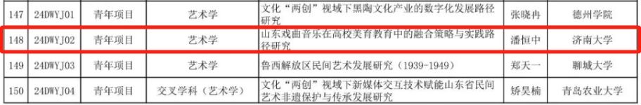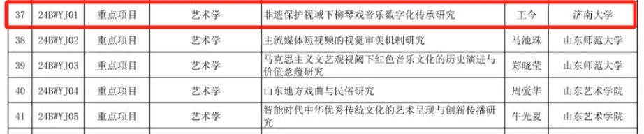 2024年度,山东省社科规划研究项目经过通讯初评、会议评审等阶段,最终评出重点项目50项,其中艺术学项目5项;青年项目200项,其中艺术学项目20项。