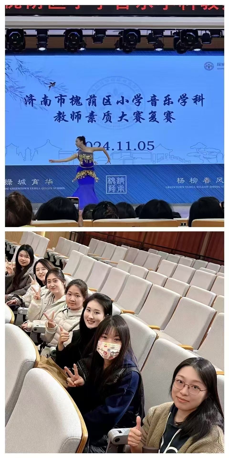 近日,济南市槐荫区小学音乐学科教师素质大赛复赛在槐荫区绿城育华杨柳春风学校隆重举行。此次大赛旨在提升小学音乐教师的专业素养和教学能力,进一步推动槐荫区音乐教育的良好发展。来自槐荫区各小学的50余名音乐教师齐聚一堂,展开了一场精彩纷呈的教学技能比拼。我院教师闵小敏副教授带领音乐教育本科、硕士一行7人赴现场观摩了此次比赛。