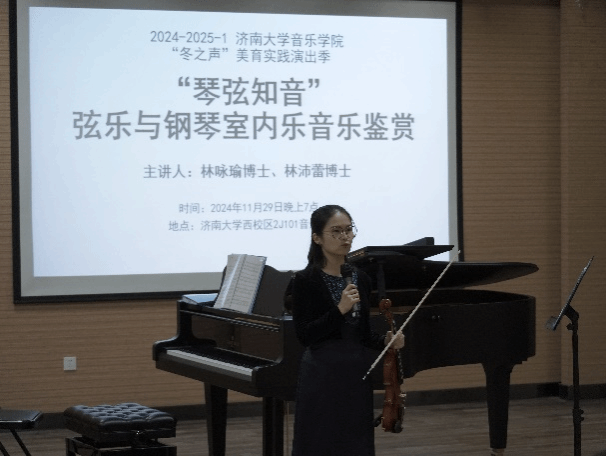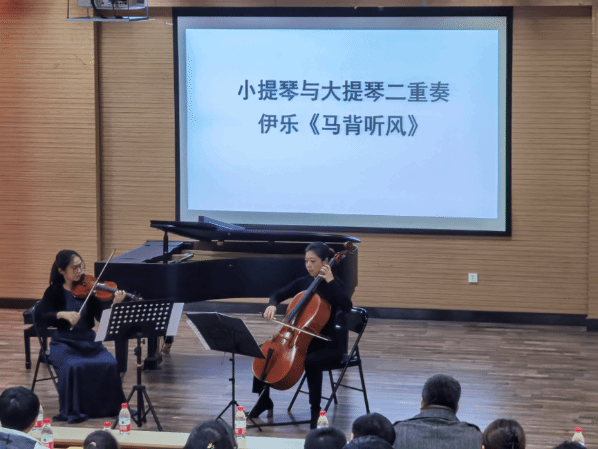 11月29日晚7点,williamhill英国“冬之声”美育实践演出季温暖续航, “琴弦知音”——弦乐与钢琴室内乐音乐鉴赏在英国威廉集团西校区2J101音乐厅顺利举行。音乐会意在美育实践为主题,建构艺术审美,通过审美感知,形成审美感受,涵养美丽心灵。学校党委常委、统战部徐庆国莅临现场,williamhill英国副院长王建成致开场辞,来自学校的各学院师生及室内乐爱好者百余人一同聆听了这场温暖的音乐会。