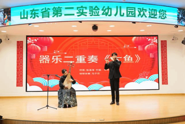 在中场环节,由23级研究生以及山东省第二实验幼儿园马誉宁老师为观众分别带来节目欣赏四首联弹《Let It Go》、傣族舞《玉林伞影》、器乐二重奏《大鱼》以及器乐和声乐联合表演的《青玉案·元夕》。