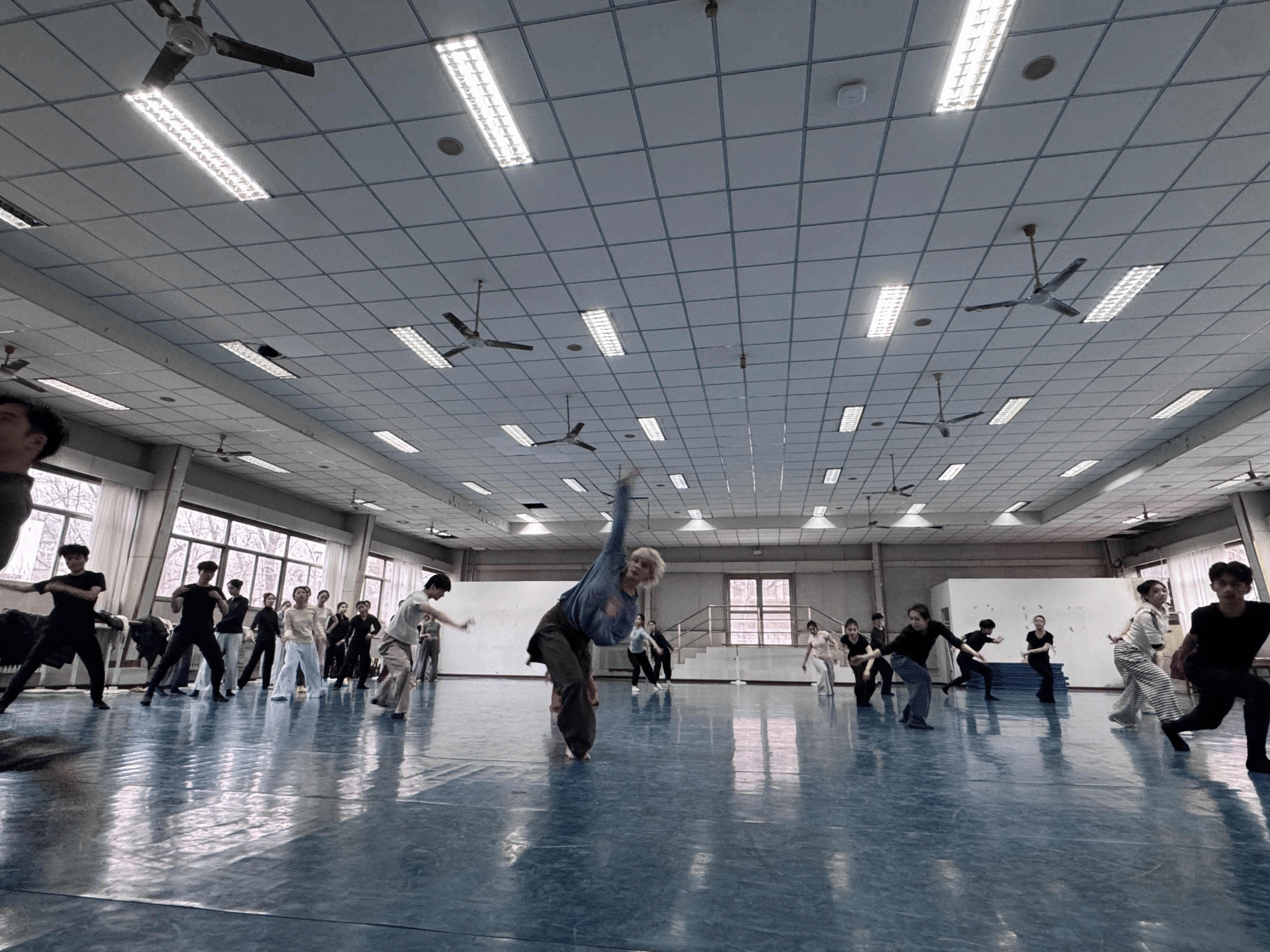 活动现场,williamhill英国舞蹈系全体教师到场观摩学习,舞蹈系2023级、2024级共35名学生参与现场训练,舞蹈系其余学生同步观摩课程。课程环节中,德国现代舞舞者Eva Schmechtig围绕当代舞技术、即兴与身体等内容展开系统指导;随后旅欧舞蹈家曲嘉男聚焦移动线性空间训练,将现代舞最前沿的技术理念进行深入剖析和解读。