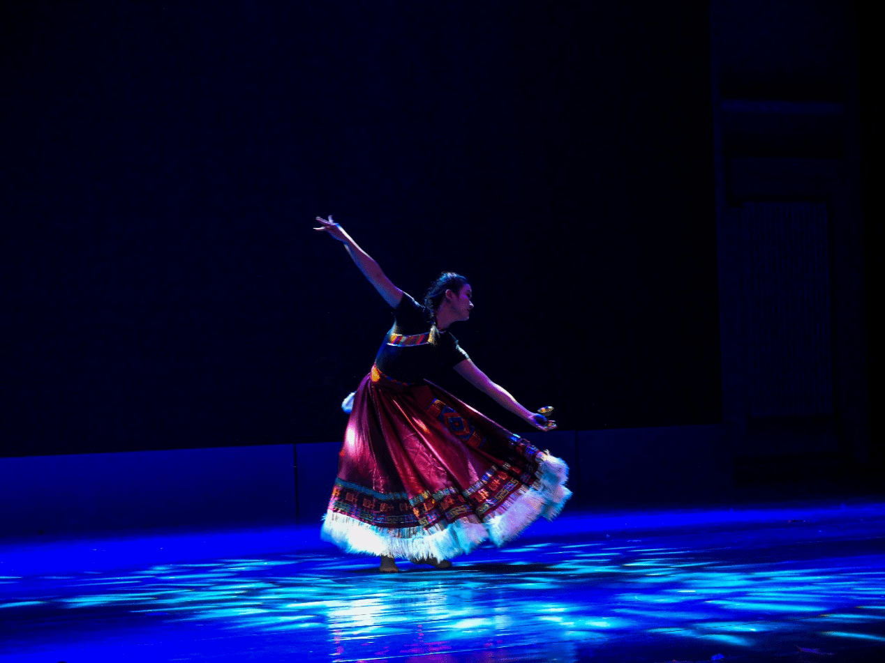 古典舞《蓠歌》与《月出佼人》尽展中国古代女子的古代遗韵之美,舞者的优美身姿如诗如画,恍若再现古代女子的柔美与韵味。舞者们的舞姿既表现出南方大山深处的神秘与幽静,又流露出潺潺流水的柔美与温婉。她们的舞蹈语言,如诗如画,如梦如幻,将观众带入了一个充满诗意与浪漫的古代世界。