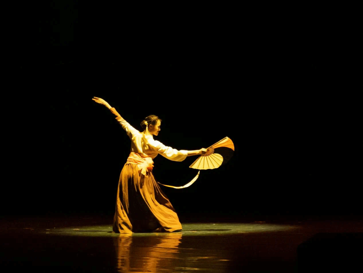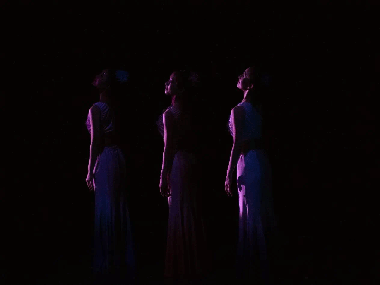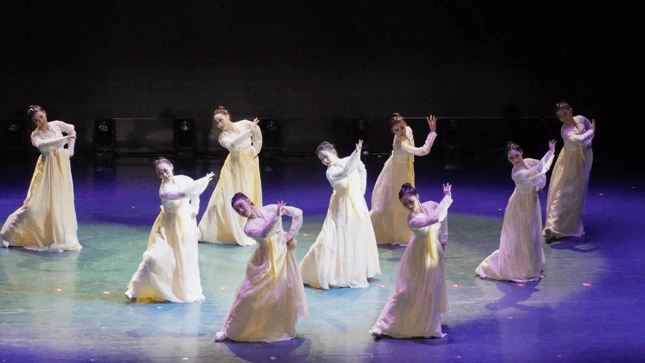 现代舞《她说》以唯美的形式深刻演绎了一段暗恋故事;原创剧目《六月茉莉》以舞蹈为媒介,巧妙地展现了人物的内心独白,触动了观众的心灵深处。傣族三人舞《泉边》中,三位傣家少女以婀娜多姿的身影、欢快的笑声和垂首梳洗的姿态,生动地展现了傣族少女的青春活力与纯朴风情;双人舞《这一刻》、《晨曦初露》、《乡愁无边》、《扇骨》以及《听过去的故事》等多部舞蹈作品,不仅是对舞蹈艺术的深入探索,更是对青春、生命和情感的真挚表达,展现了学生们对舞蹈事业的热爱与执着追求。