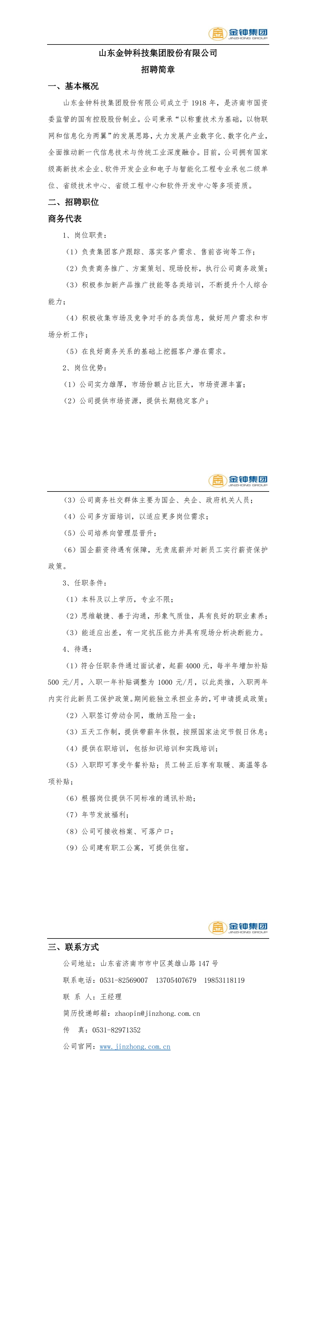 山东金钟科技集团股份有限公司招聘简章