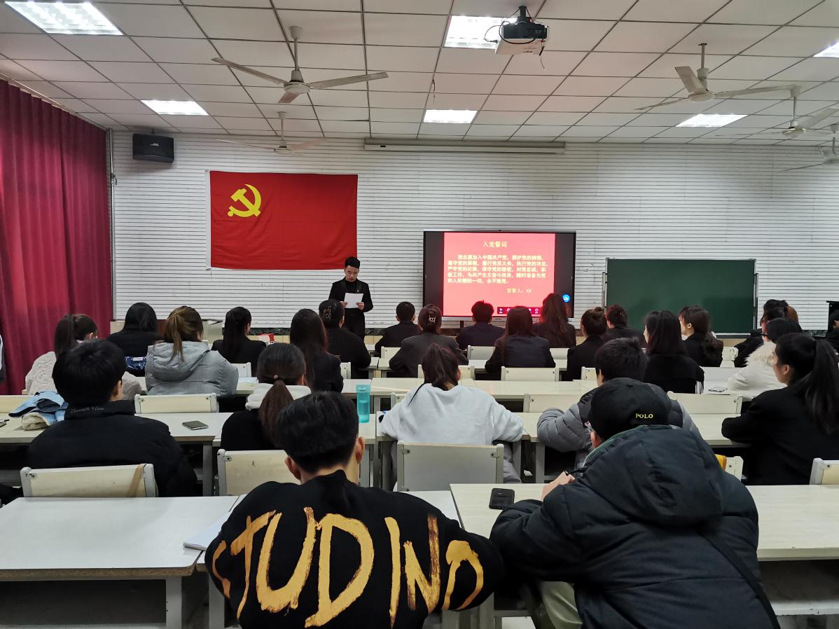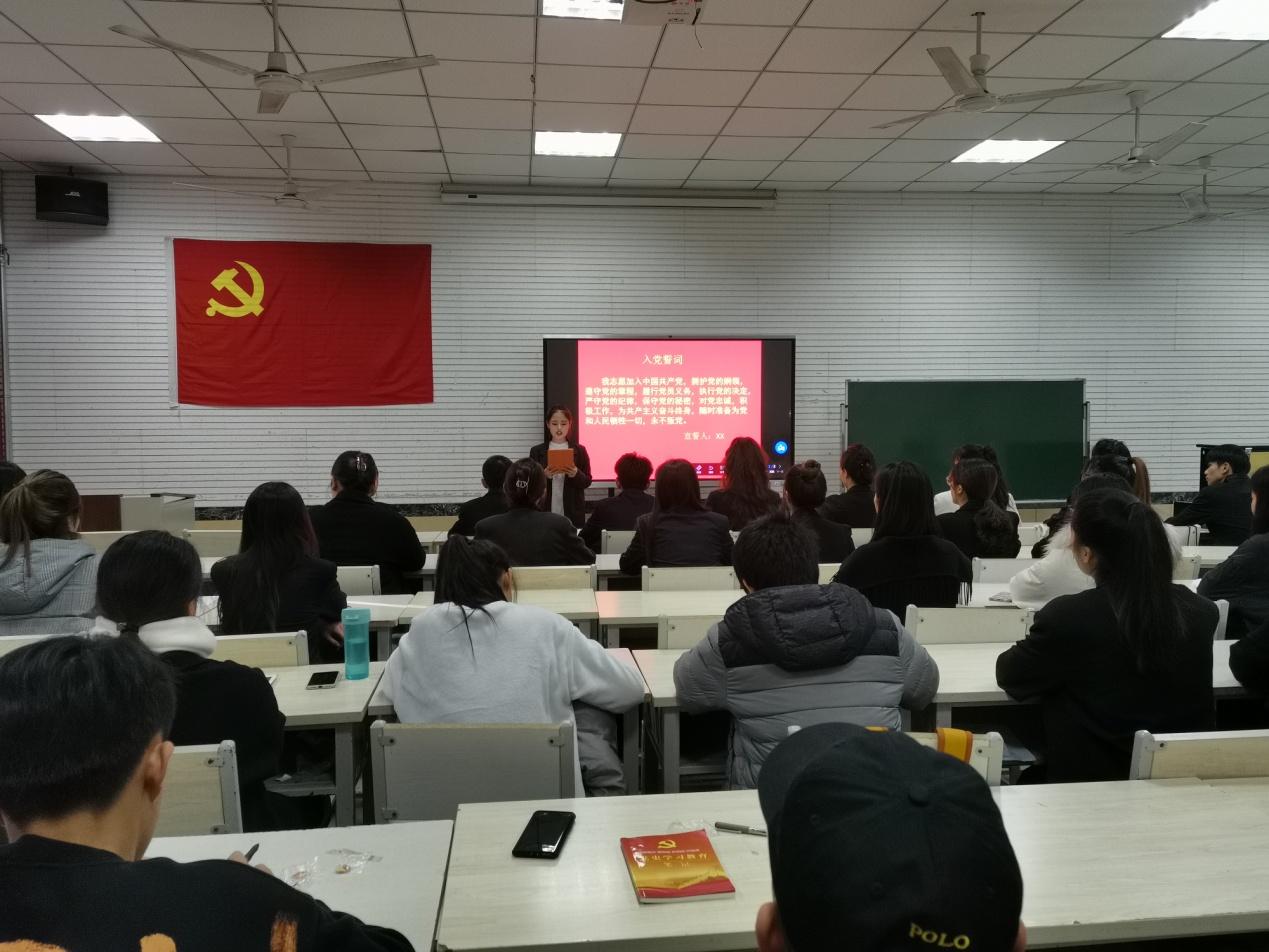 12月14日下午,williamhill英国在第二多媒体教室举行新发展预备党员入党宣誓仪式,学院新发展的预备党员师生29人参加宣誓,仪式由学生第一党支部书记马媛主持。