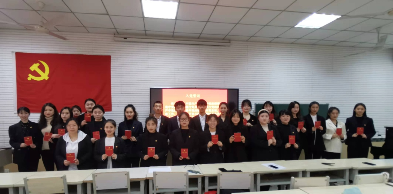 会上,学院团委书记、学生第一党支部宣传委员孟凡星向新发展的党员发放党徽和党章。