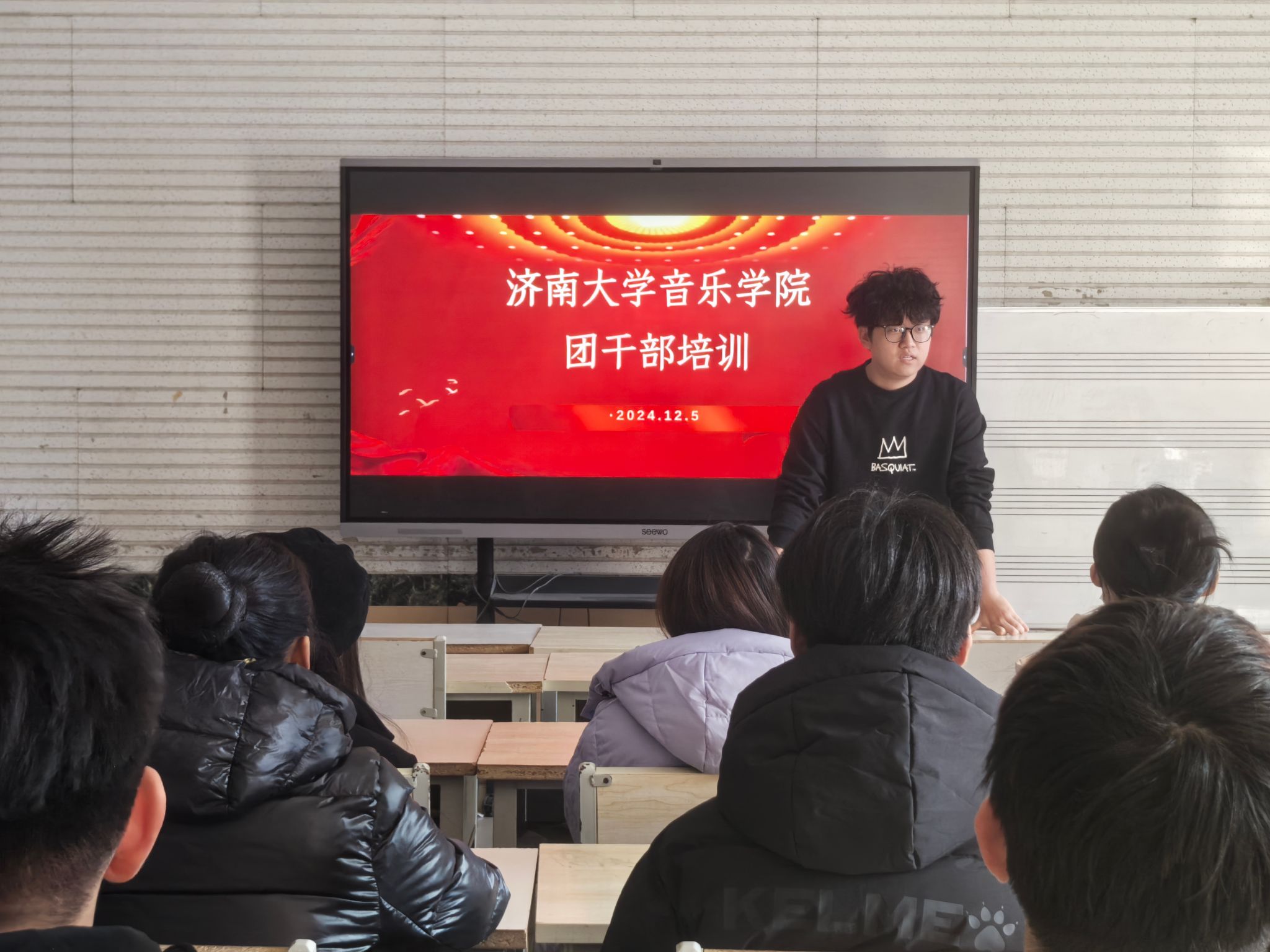 他鼓励在座的学生团干部,应结合音乐专业学生的特质,在管理方法上不断寻求创新与改进,确保切实履行并完成学院团委下达的各项任务,逐步提升团员的综合素养。他期望新任的团干部能够依托专业特长,广泛吸收经验,积极进取,努力实现新的进展,共同为班级管理及团学活动的发展作出贡献。